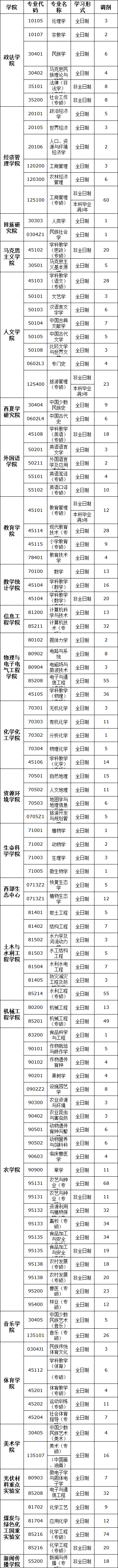 7、農(nóng)學(xué)院所有學(xué)術(shù)型有調(diào)劑名額的專業(yè),接收專業(yè)學(xué)位考生申請調(diào)劑。
