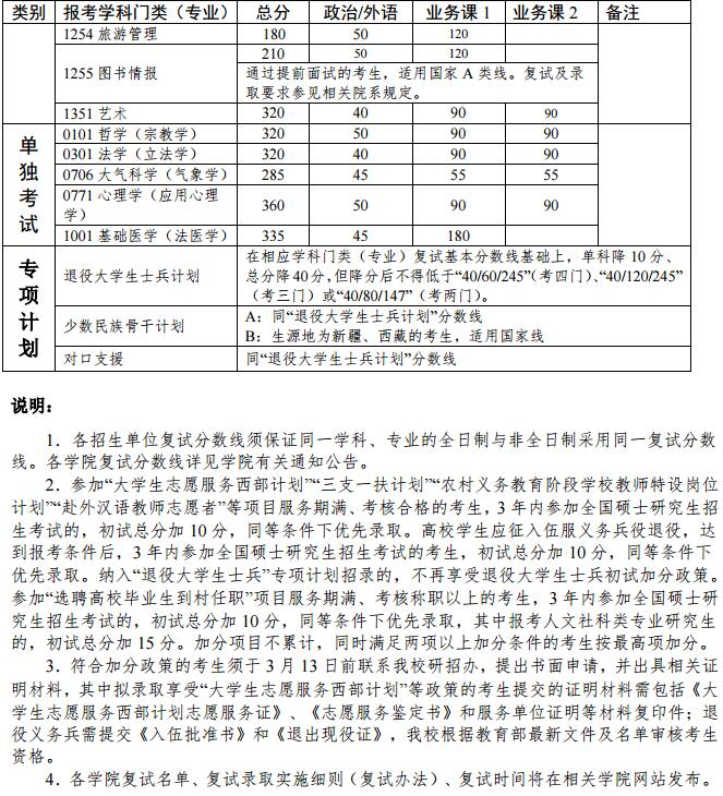 中山大學(xué)2019年碩士研究生招生考試復(fù)試基本分?jǐn)?shù)線