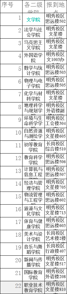 參加復(fù)試的考生于3月28日下午14:30到指定地點報到、提交資格審查材料。筆試和面試地點見《南寧師范大學(xué)2019全日制碩士研究生復(fù)試安排》(27日見本網(wǎng)公布)。各二級學(xué)院報到地點如下: