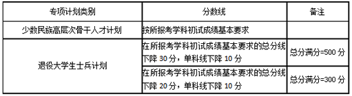 三、專(zhuān)項(xiàng)計(jì)劃考生的初試成績(jī)基本要求: