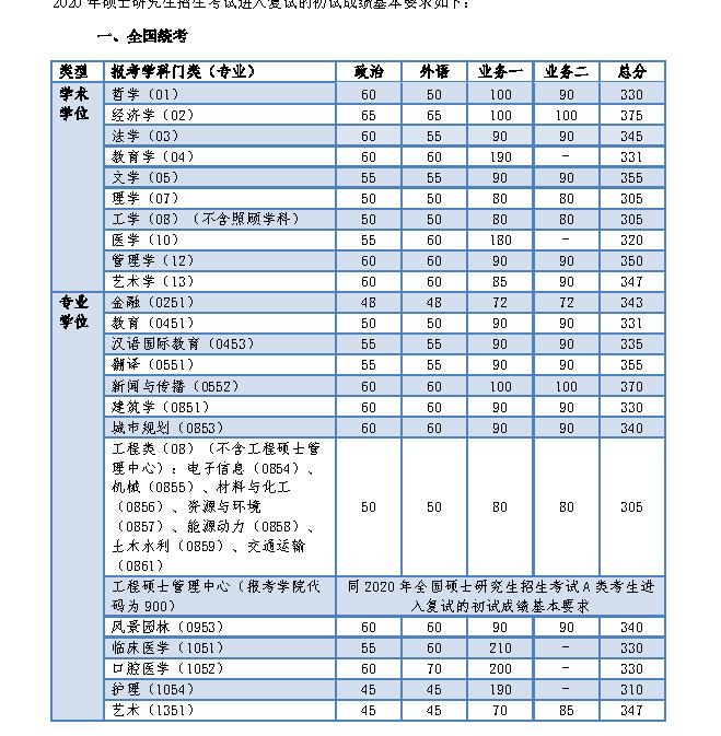 同濟(jì)大學(xué)2020年復(fù)試分?jǐn)?shù)線院校動(dòng)態(tài)