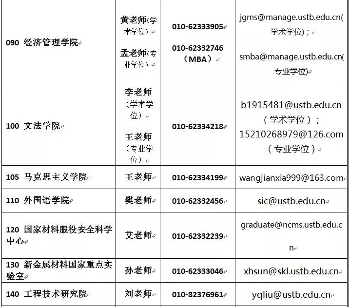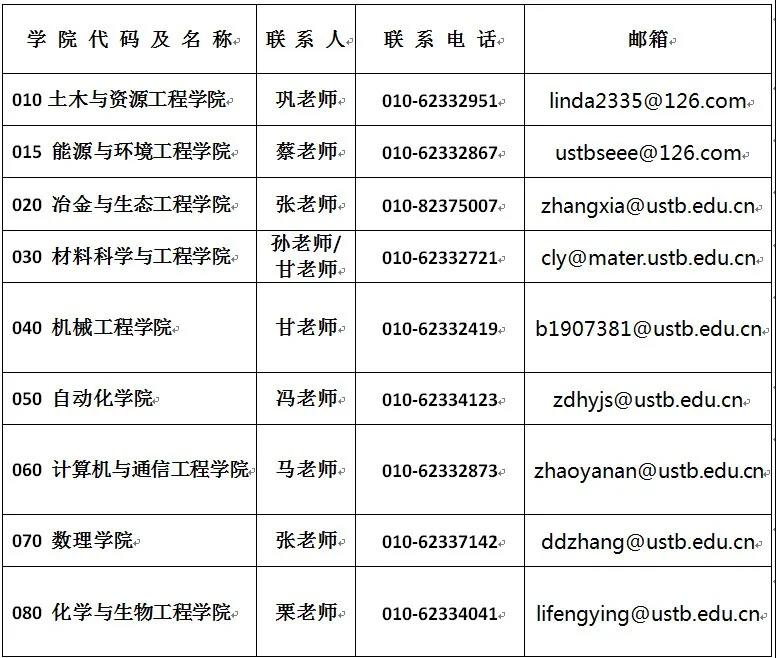 疫情防控非常時期,現(xiàn)場咨詢暫停,考生可通過電話或電子郵件方式進行咨詢,研招辦電話為010-62332484,郵箱為yzb@ustb.edu.cn;各培養(yǎng)單位咨詢電話及郵箱附后。我們將盡力做到及時回復郵件,如個別郵件回復不及時,敬請諒解。