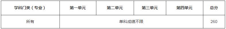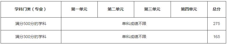 單科成績不限,總分不低于對應(yīng)統(tǒng)考的學(xué)科門類(專業(yè))學(xué)校分數(shù)線的90%(四舍五入取整)。