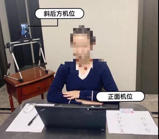 考生要雙機位模式參加復(fù)試,即需要注冊申請兩個獨立賬號同時進入候考室或復(fù)試室,分別登陸兩部帶攝像頭的設(shè)備,手機或電腦均可。一臺設(shè)備從正面拍攝,另一臺設(shè)備從考生側(cè)后方拍攝??忌藘膳_設(shè)備開啟攝像頭,一臺設(shè)備將攝像頭對準(zhǔn)考生本人,另一臺設(shè)備攝像頭從考生后方成45°拍攝(后方拍攝的設(shè)備須靜麥和關(guān)閉音頻,防止回音影響復(fù)試),并保證考生端考試屏幕能清晰地被復(fù)試專家組看到。
