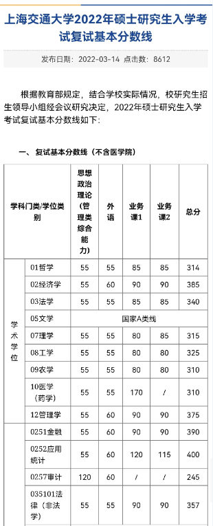 2022年上海交通大學(xué)研究生復(fù)試分?jǐn)?shù)線已公布院校動(dòng)態(tài)