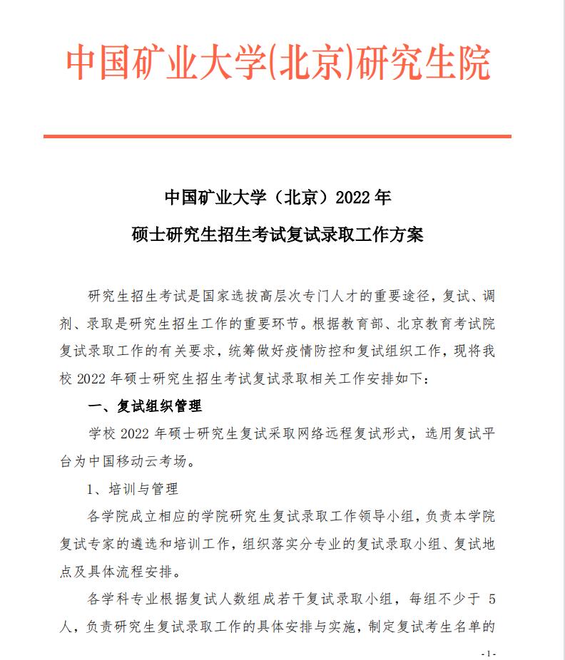 2022年中國(guó)礦大(北京)研究生復(fù)試方案院校動(dòng)態(tài)