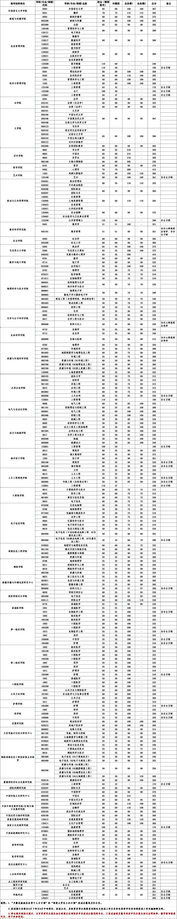 復(fù)試分?jǐn)?shù)線,武漢大學(xué)