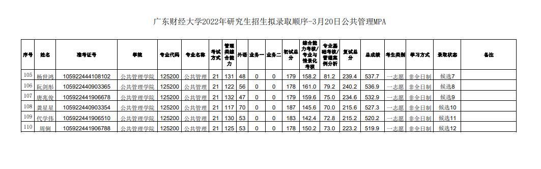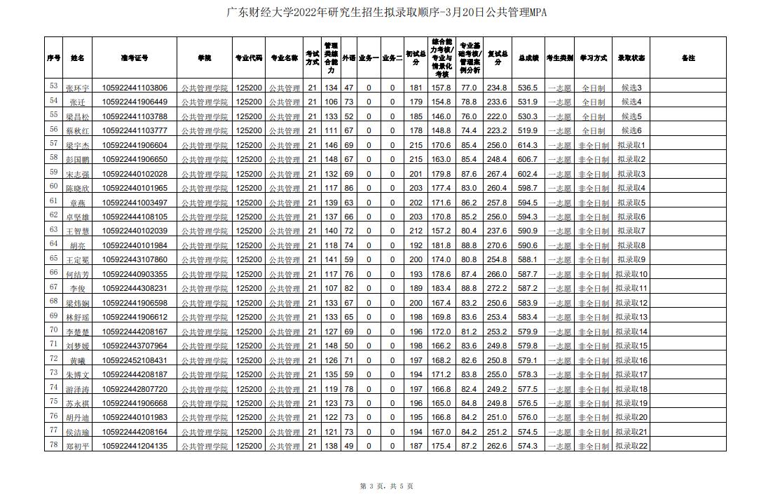 廣東財經(jīng)大學MPA一志愿復試工作已經(jīng)完成,全日制MPA擬錄取50人,候選人6人。非全日制MPA擬錄取42人,候選12人。名單如下: