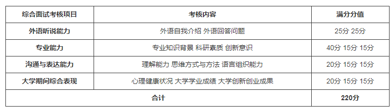 3.復(fù)試總分220分,考核項目及分值見下表: