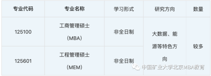 中國礦業(yè)大學(xué)(北京)管理學(xué)院2022年專業(yè)碩士研究生接受調(diào)劑專業(yè)如下: