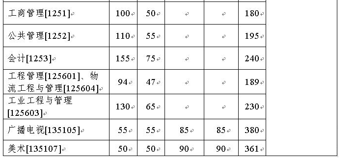 注:工商管理[1251]、公共管理[1252]、會計[1253]、工程管理[125601]、工業(yè)工程與管理[125603]和物流工程與管理[125604]第一門考試科目為管理類綜合能力。