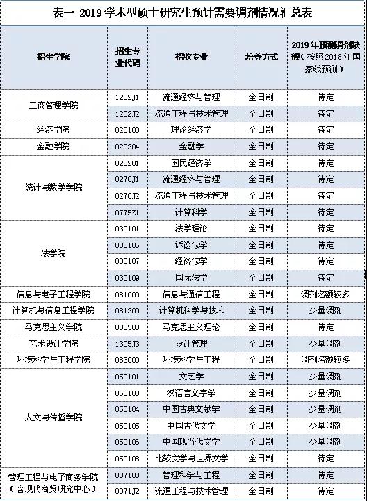 浙江工商大學2019年碩士研究生調劑預通知院校動態(tài)